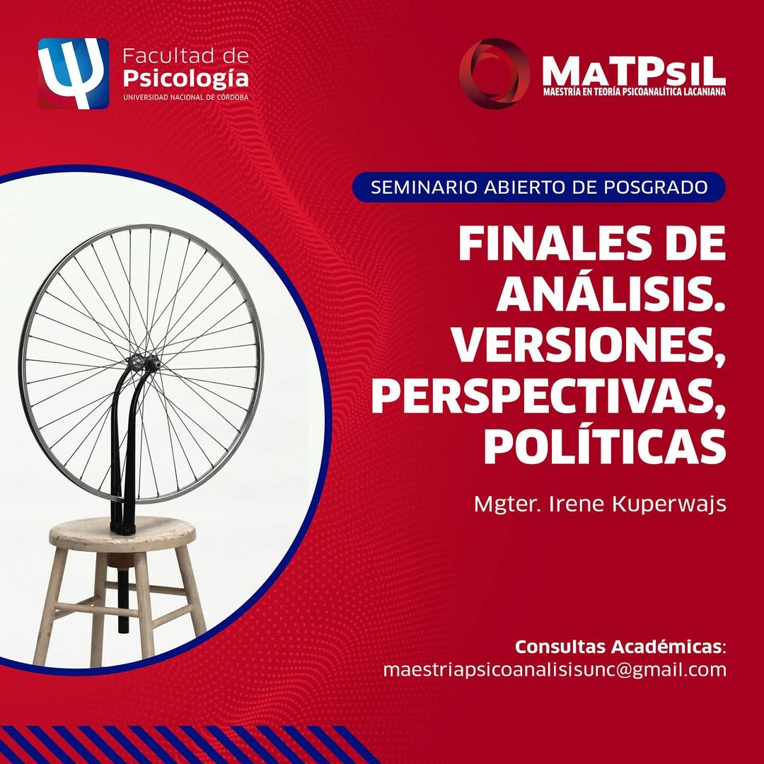 Seminario de posgrado abierto a alumnos externos. Modalidad Online. Jueves 4 de diciembre de 9 a 1430 hs. Informes: maestriapsicoanalisisunc@gmail.com